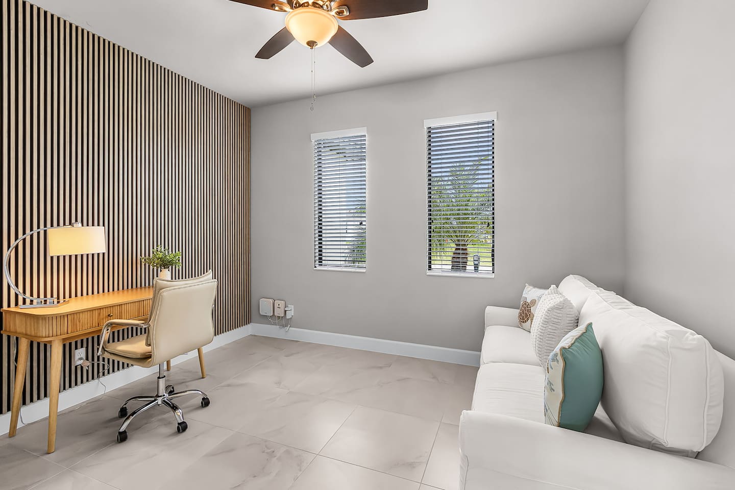 A dedicated office space adds versatility to the home, providing a quiet and comfortable setting for reading, working, or simply unwinding.