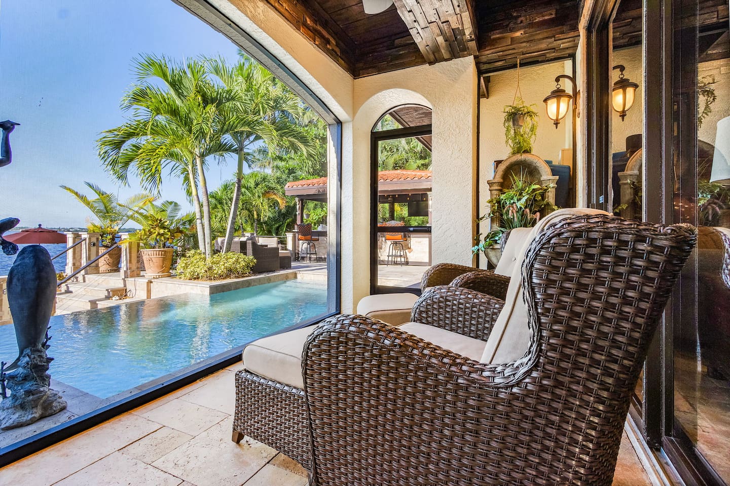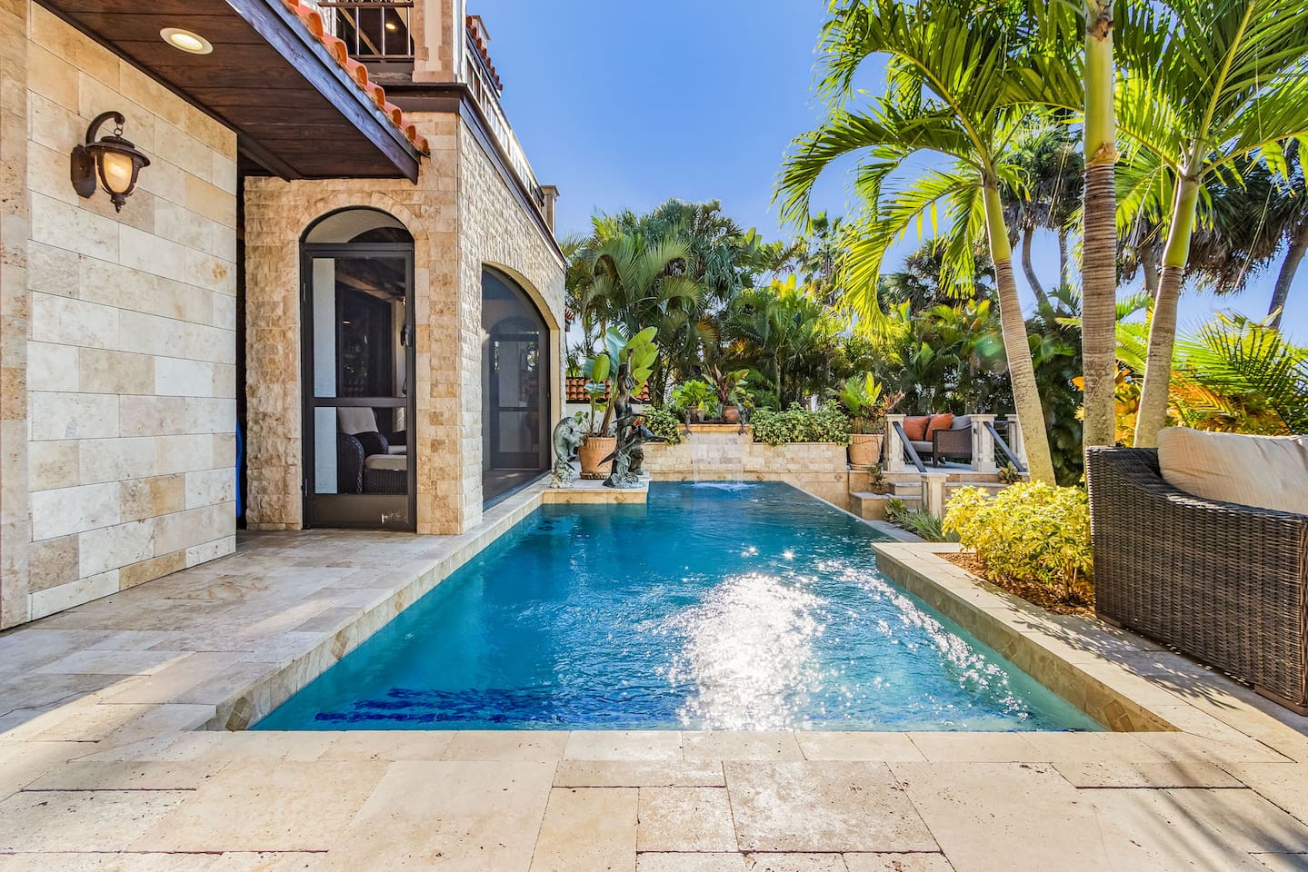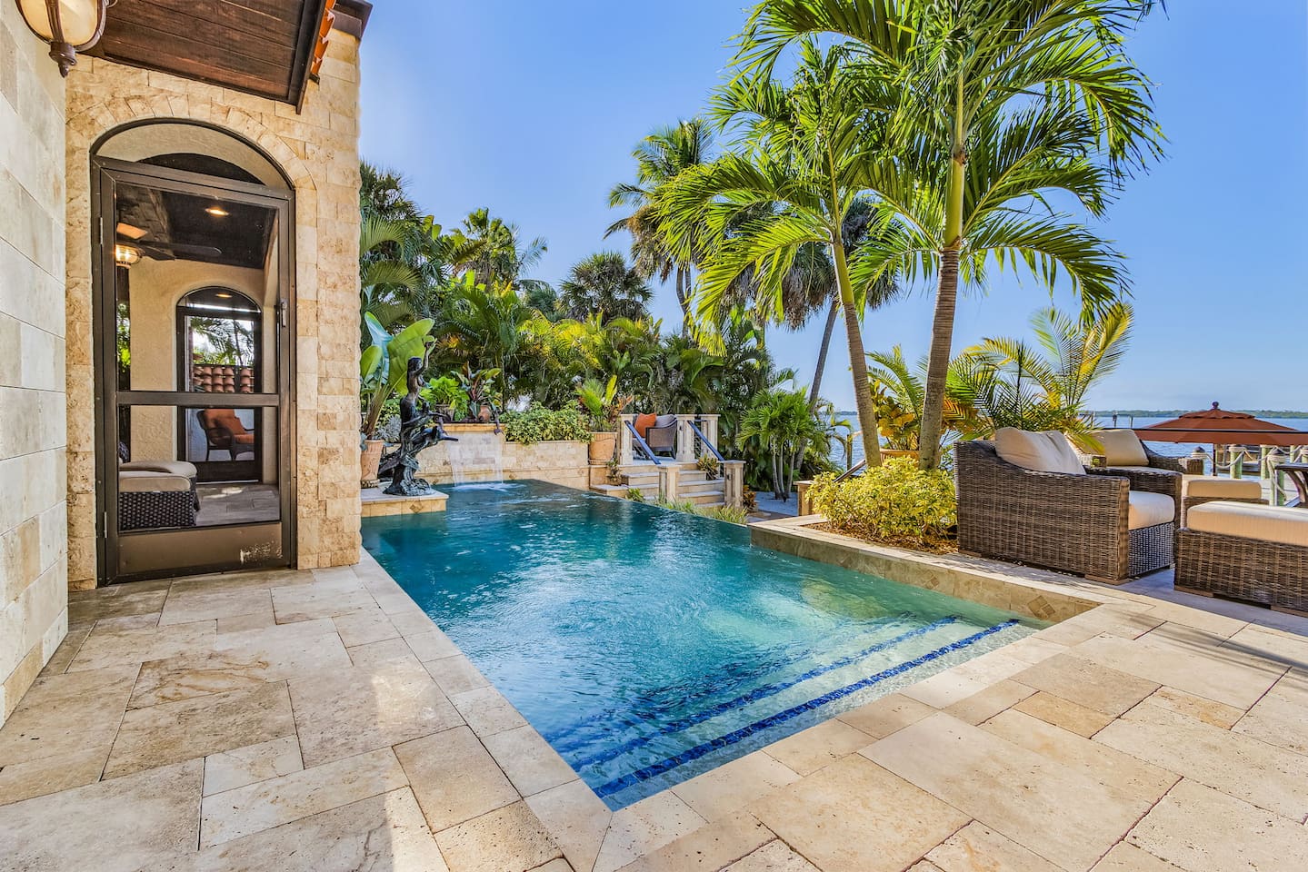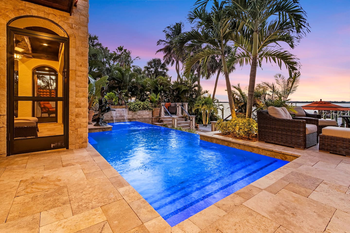 3 Bedrooms • 4 Bathrooms (3 full, 1 half) 4 Baths (3 full, 1 half) • Sleeps 3-6Experience Nascosto Estate, a Mediterranean waterfront sanctuary on the Caloosahatchee River. This extraordinary estate offers resort-style amenities, including a heated infinity pool with a cascading waterfall, sanded lounge, fire pit, private pier, and boat lift. Just minutes from Downtown Fort Myers, it provides absolute privacy, breathtaking river views, and magical sunsets—a one-of-a-kind escape where every moment feels unforgettable and memories last a lifetime!