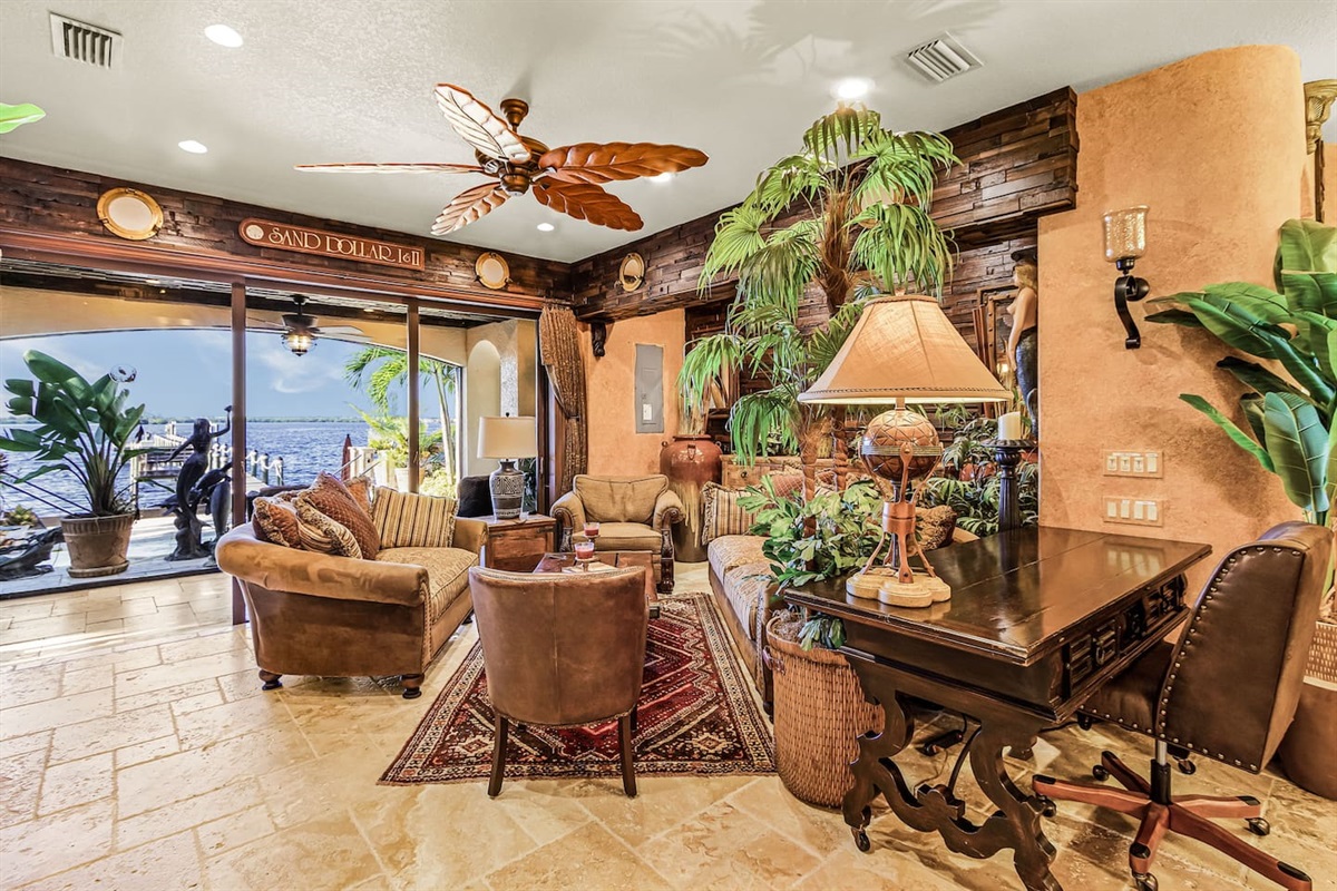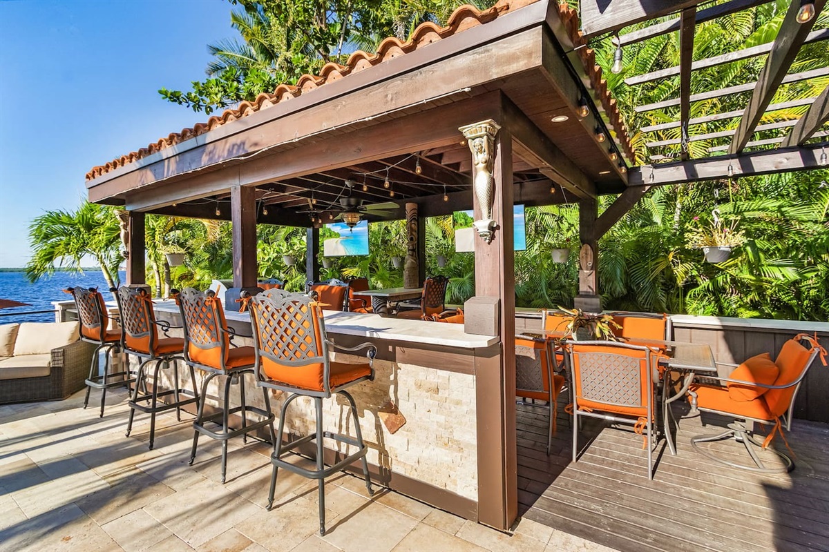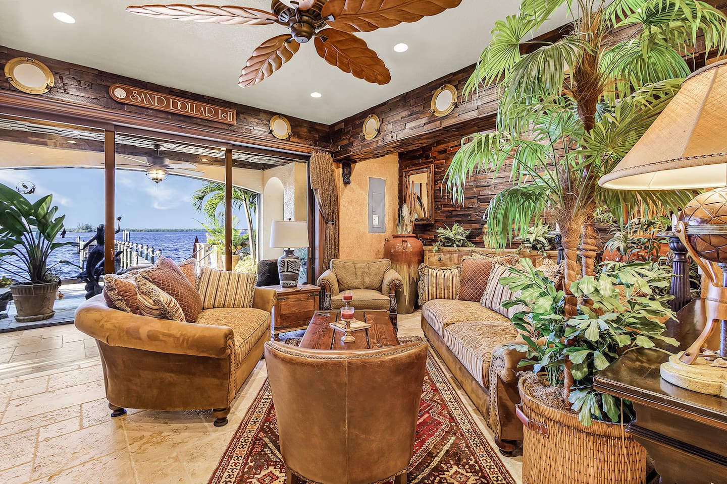 At the heart of the estate is the outdoors—a resort-style paradise along the waterfront. Lounge in the heated infinity pool with cascading waterfall, sink into the sanded lounge area with chaise lounges, gather around the fire pit, or step out to your private pier, 200-foot dock, and boat lift—perfect for boating, fishing, or exploring the Caloosahatchee River. Delight in the coastal wildlife, from playful dolphins to graceful seabirds, and experience magical sunsets that transform every evening into a moment to remember. Every element—from the lush landscaping to the shimmering waters—is designed to inspire relaxation, joy, and unforgettable memories!