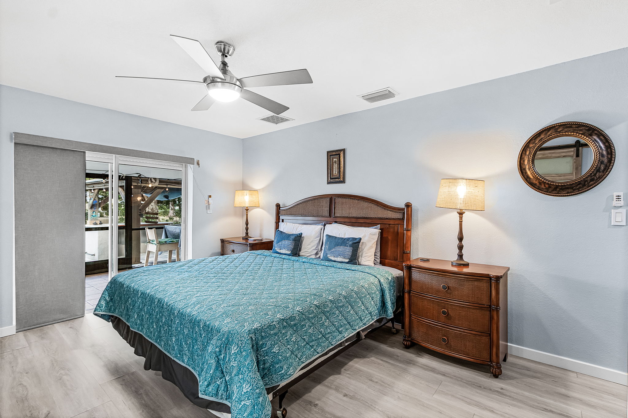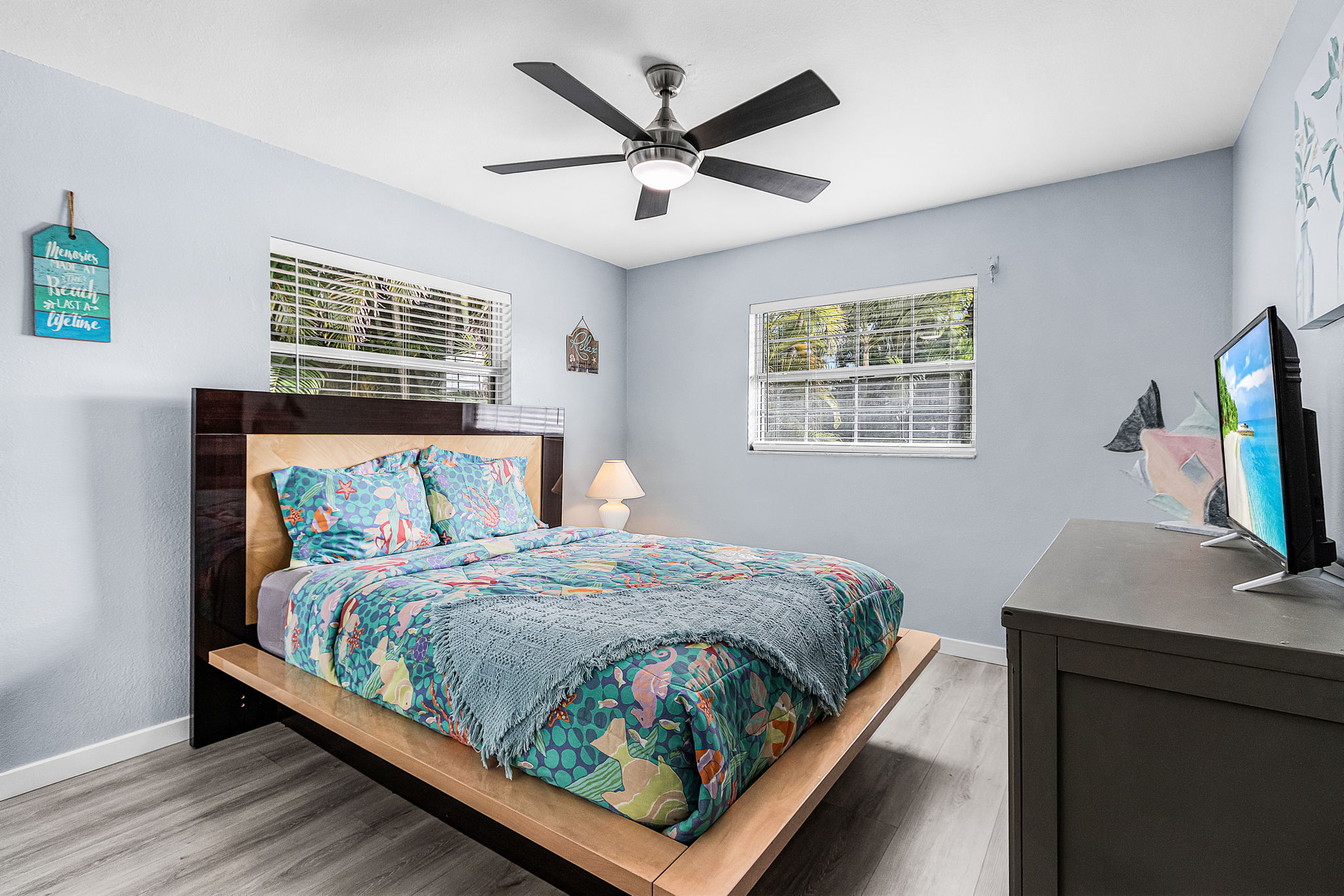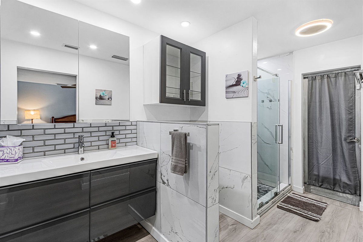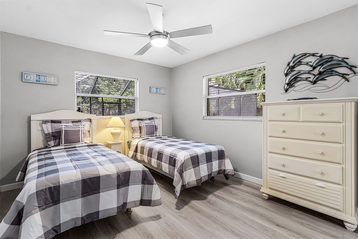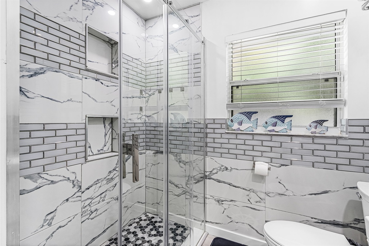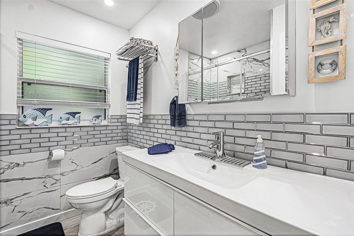 The home features three coastal-designed bedrooms, including a peaceful primary suite, offering a restful retreat after a day of sun and adventure. Both charming bathrooms have been recently remodeled with stylish walk-in showers, providing a fresh and elevated feel throughout the home.